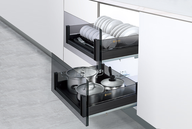 → 設計:标配星徽阻尼滑軌,開合順滑流暢、靜音自動回位; 科學細分3大區域,設有餐具架、百變置碟架和百變置碗架,分區自由組合,滿足個性化收納習慣。
