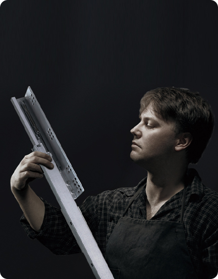 → 針對面闆無拉手的情形,可選用内置反彈功能的CBZFT隐藏式反彈滑軌