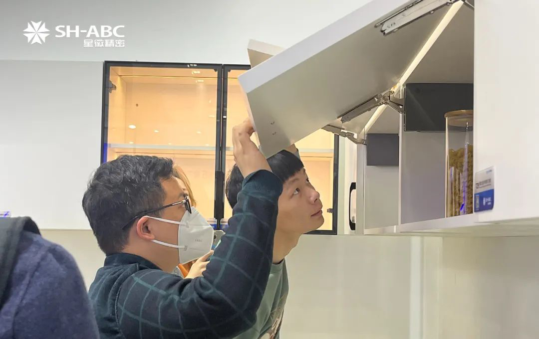 星徽精密在此次展位形象和産品發布上下足瞭(le)功夫,充滿無限創意和專業化的設計讓星徽精密展區在人氣和體驗上更勝一籌。展廳圍繞歐式廚櫃五金、美式櫥櫃五金、浴室櫃五金、衣帽間以及廚房功能五金幾大場景,根據産品分類進行搭配,特色鮮明,主題突出,展區陳列設計簡潔,讓參(cān)觀客戶體驗到高端五金在家居生活中的實際使用。