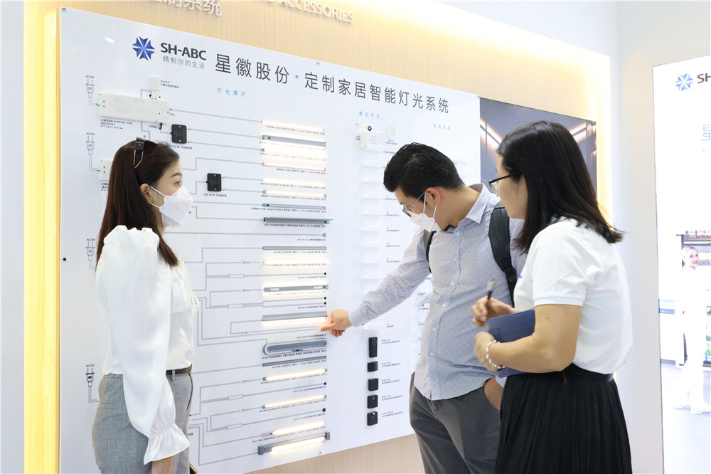 星徽展台的亮點(diǎn)不止服務。全新引入智能五金、燈(dēng)光控制系統同樣吸睛。